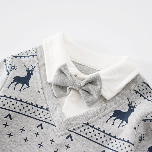 Smart Deer Bow Tie Baby Romper – Unisex 100% Cotton Newborn & Infant Bodysuit