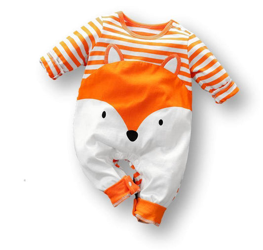 🦊 Orange Fox Babysuit Romper – 100% Cotton Unisex Baby Romper (0–18 Months)