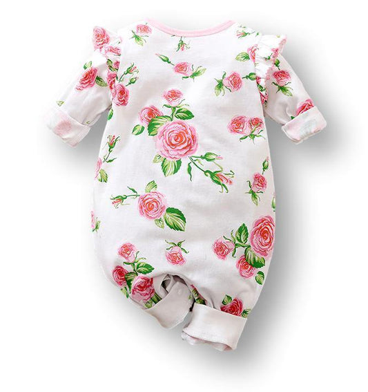 Rose Babysuit Romper – 100% Cotton Baby Suit with Poppers, Unisex Print