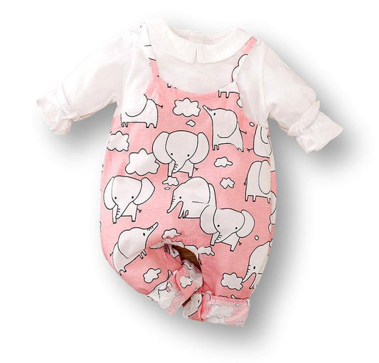 Cute Elephant Pigeon Print Romper Babysuit.