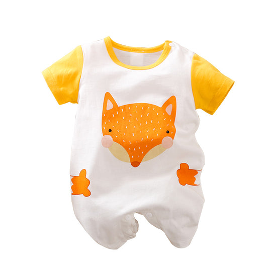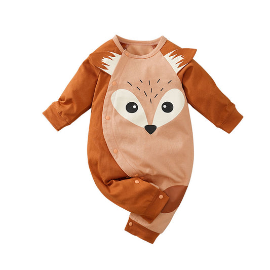 🦊 Orange Fox Babysuit Romper – 100% Cotton Unisex Baby Romper (0–18 Months)