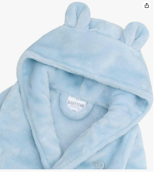 Baby Dressing Gown Unisex Soft Plush Fleece Hooded Teddy Ears 0-24 Month