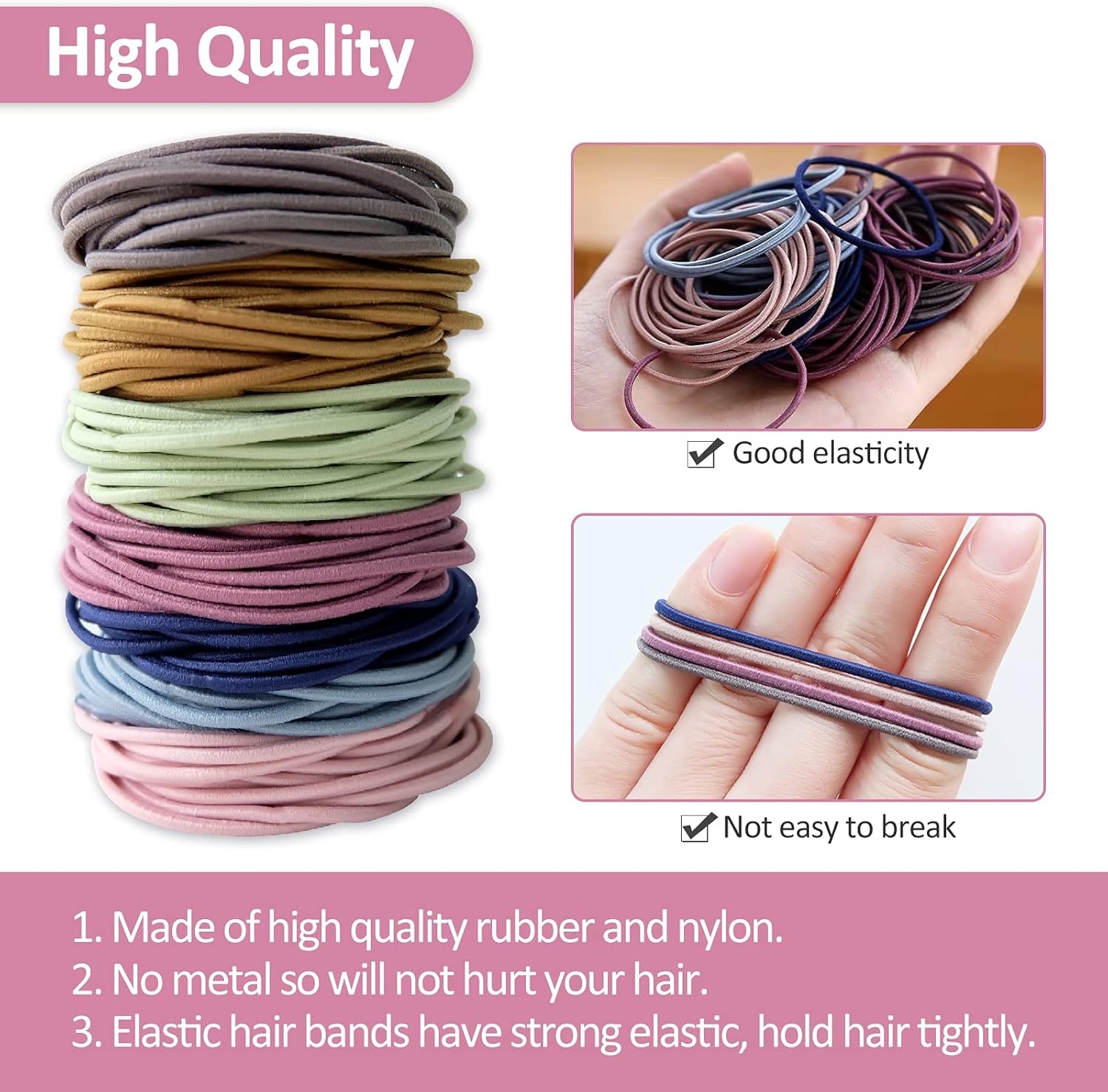 200 PCS Elastic Hair Bands, 2mm Thin Hair Ties, Multicolor Ponytail Holders, Hair Bobbles for Girls Women