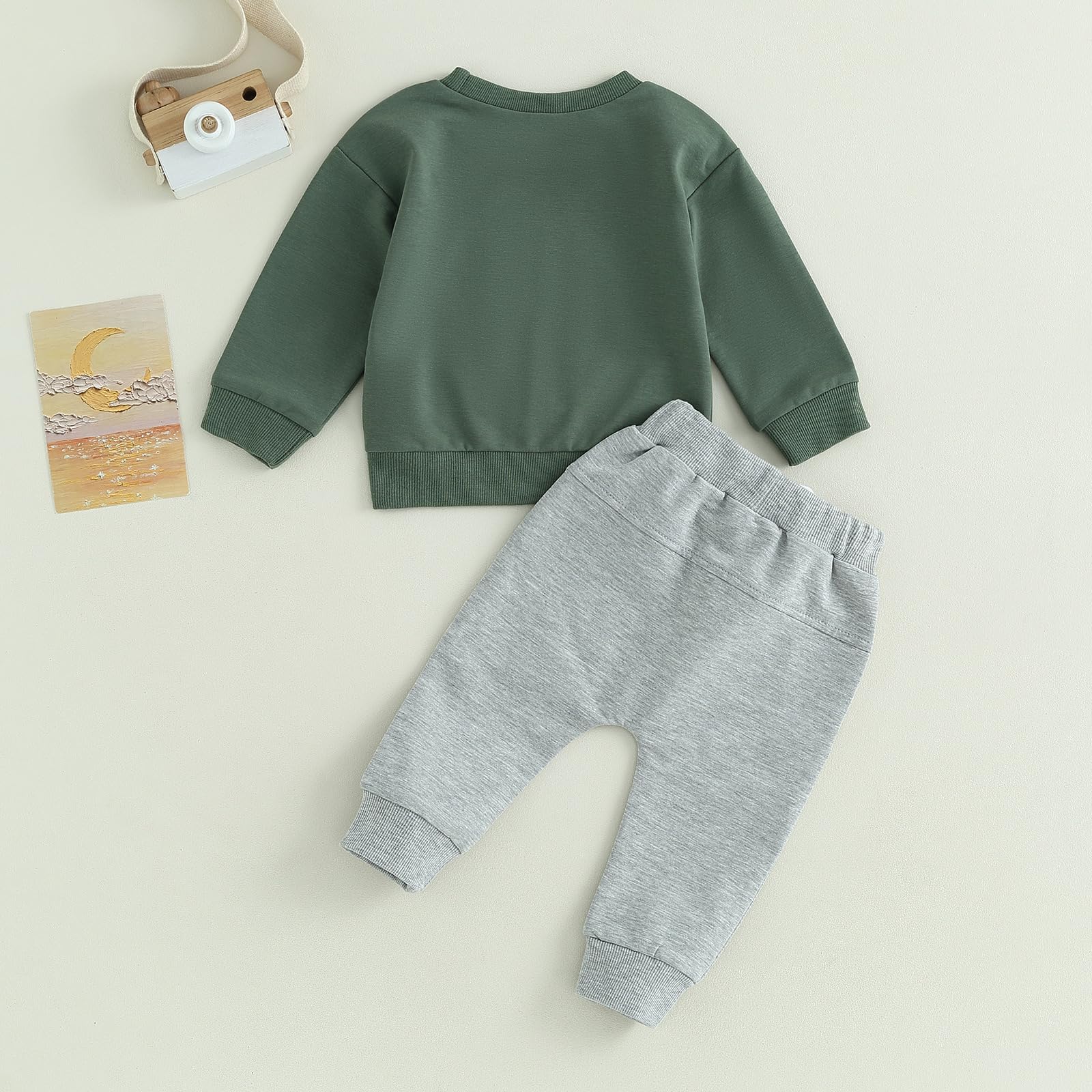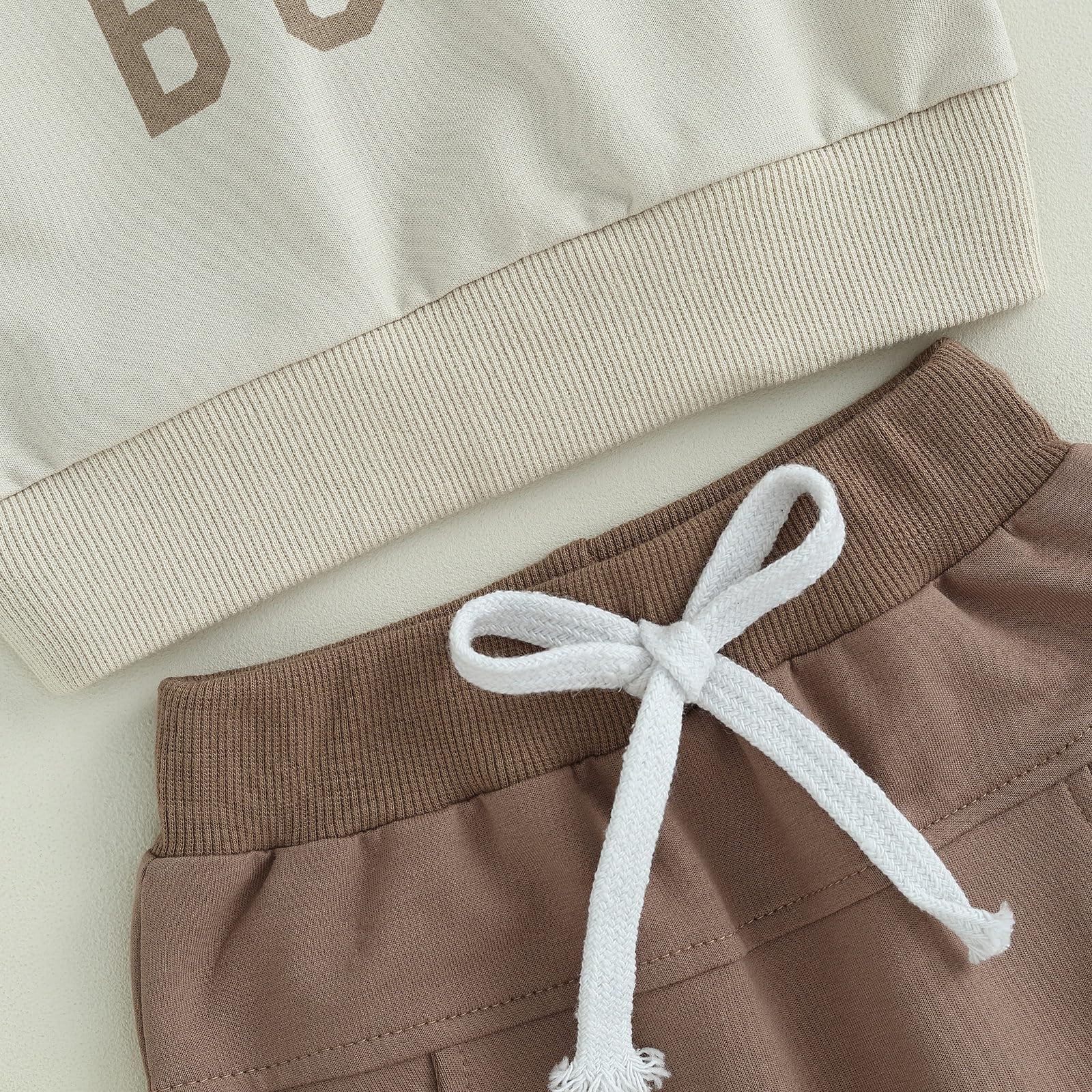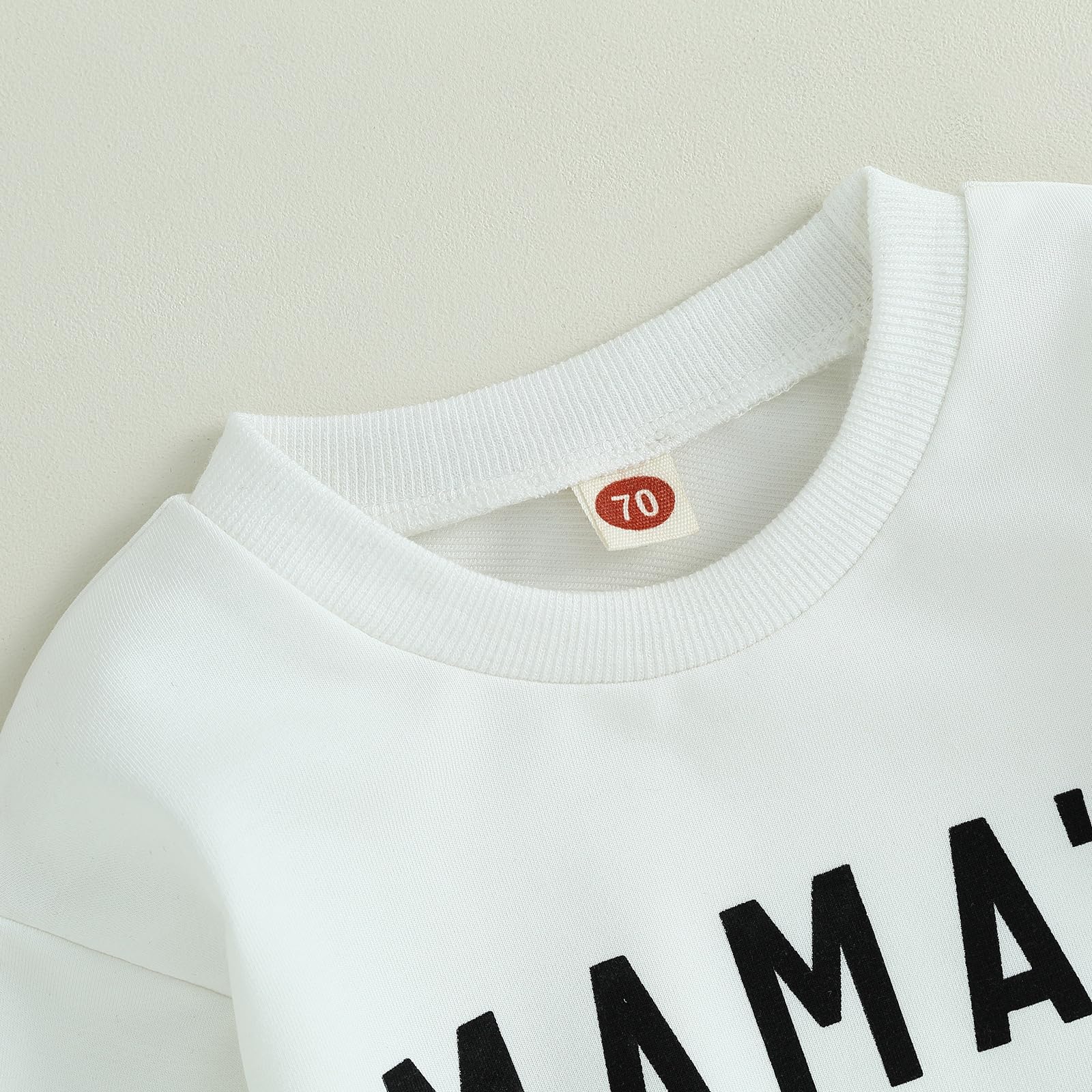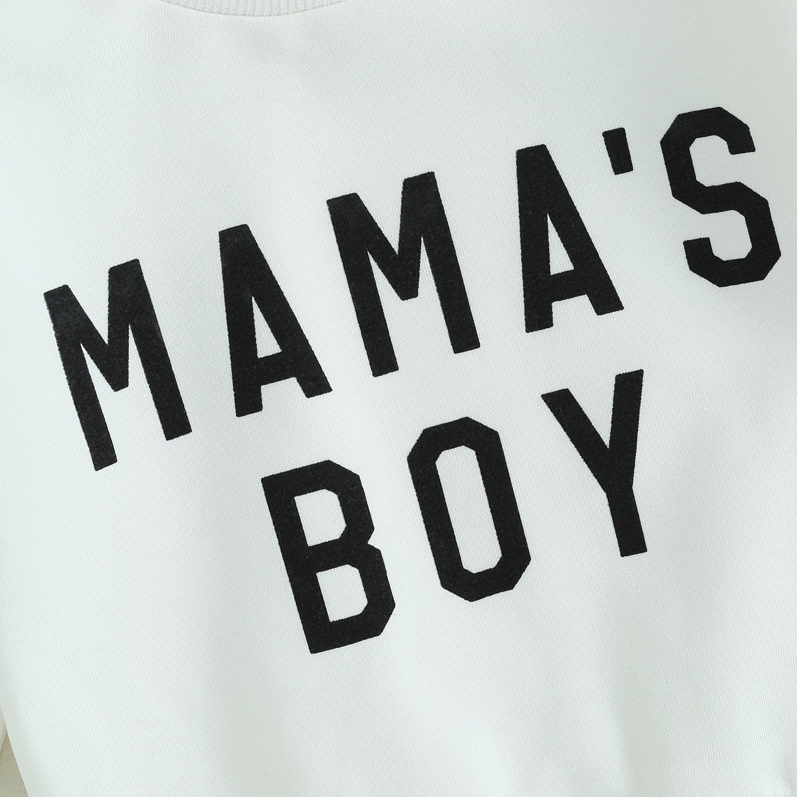 - The long sleeve sweatshirt with letter "Mama's Boy". The cute pants with elastic waistband.