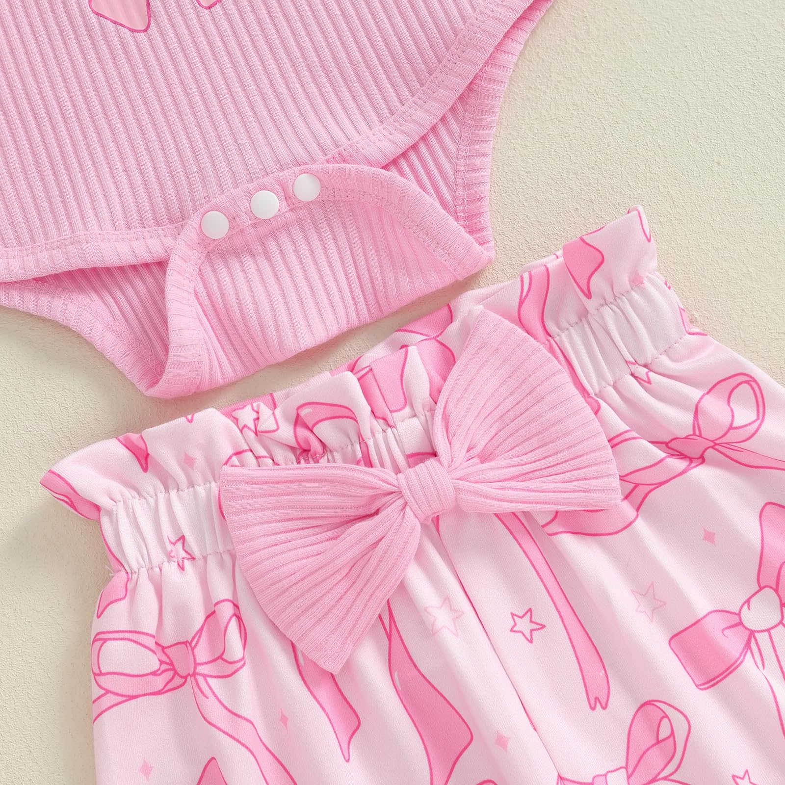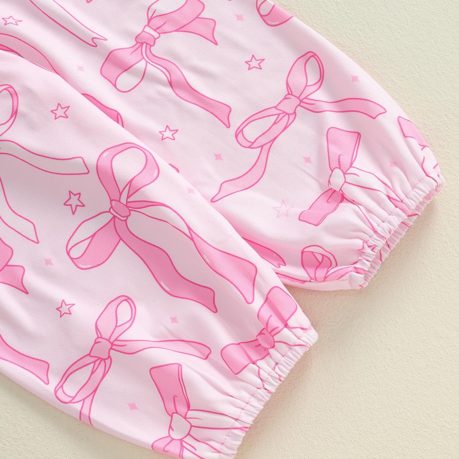 4pcs Outfits Set Long Sleeve Romper Top Bow Print Trousers Hat Headband