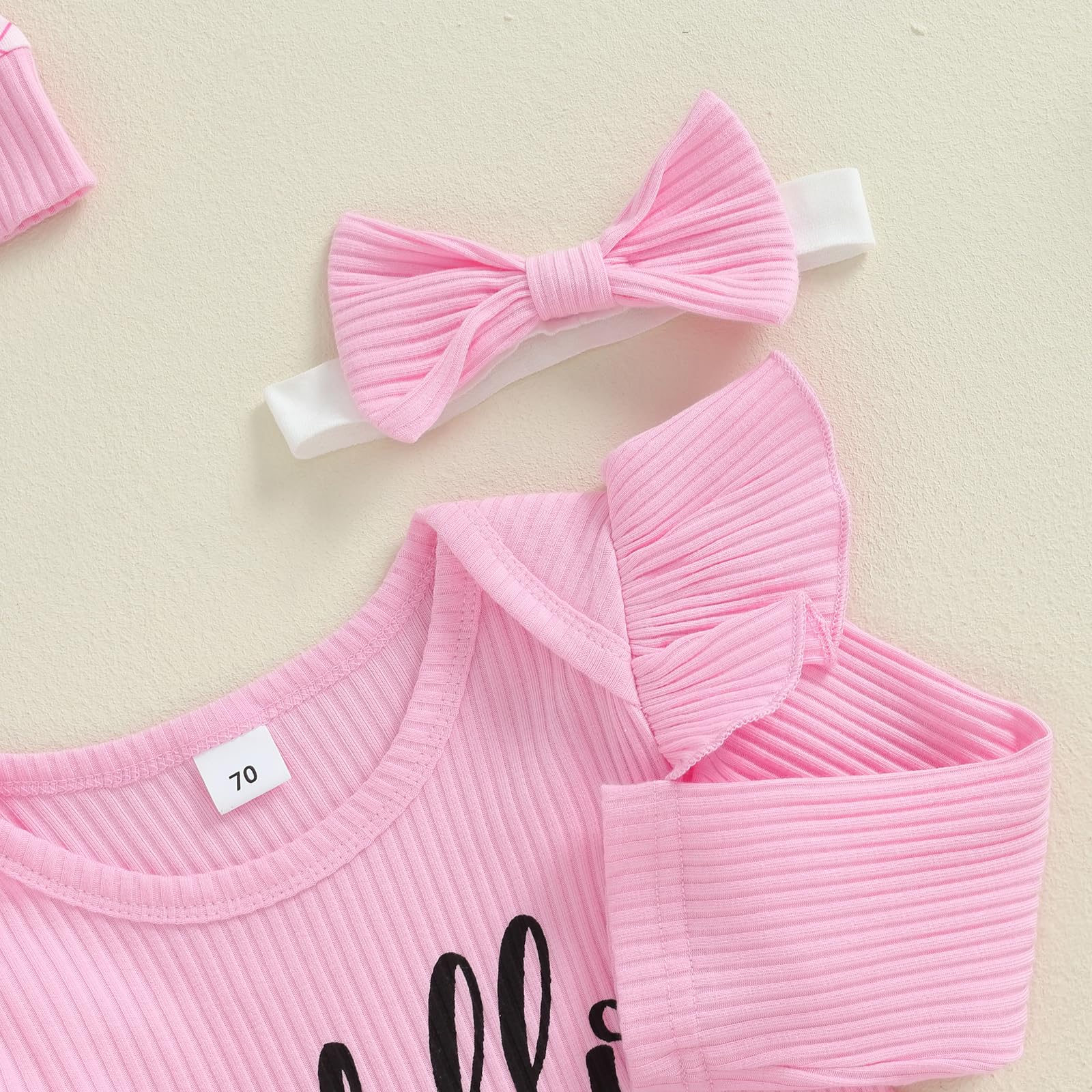 - Design: Cute baby girls fall clothes, features with crew neck long flying sleeve lettered romper. Button closure, hello, i’m new here, letter print ribbed romper top, matching the elastic bow waist bow pattern / butterfly print leggings pants, lovely hat and headband, This 4 pieces infant girls coming home clothes set, make your little one more adorable.